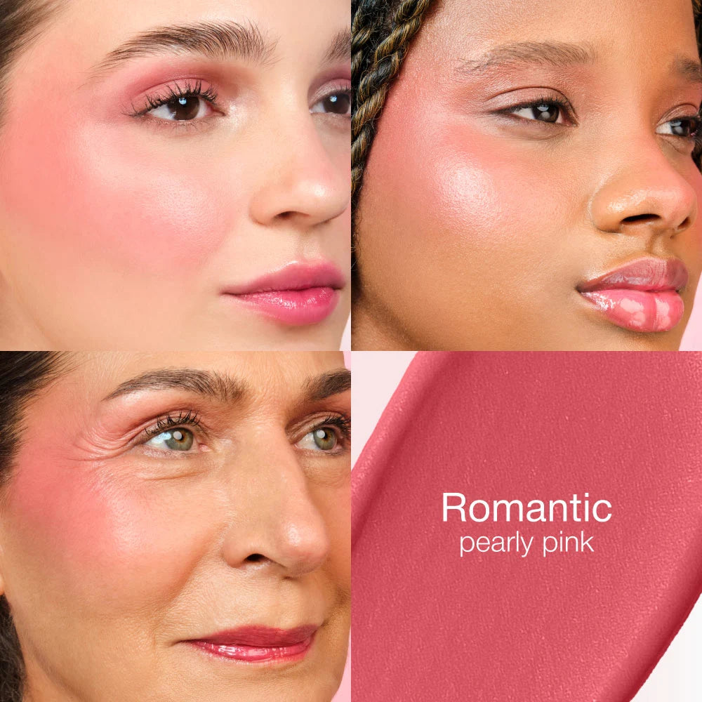 Our INFINIT-GLAM ROMANTIC is a creamy blush for lips, cheeks, and eyes. Its exclusive multifunctional formula allows giving a radiant and youthful tone to the lips, cheeks, and eyelids. It has a soft and light texture with a luminous and radiant finish. It can be mixed with other colors to achieve the desired shade. It contains 2% Hyaluronic Acid, natural pigments, and Bixa Orellana extract, which help maintain the natural beauty of the skin, revealing it firm, hydrated, and young. Buildable color intensity.